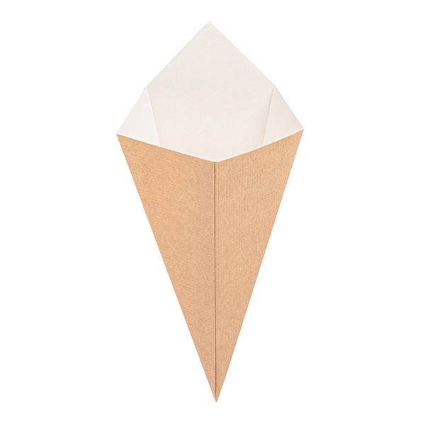 La forme conique du cornet permet une prise en main facile et crée une présentation esthétique qui peut être appréciée visuellement par les clients. Il offre une prise ergonomique qui facilite la dégustation des frites sans avoir besoin d'utiliser des couverts.
