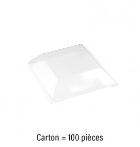 Couvercle pour assiette carré cubik en pulpe de canne, une assiette jetable de trois formats petite, carré, ou rectangulaire pour un plateau repas biodegradable ou créer vous même votre plateau repas. Un design unique pour cette assiette haut de gamme qui permet de mettre en valeur vos préparations culinaires.