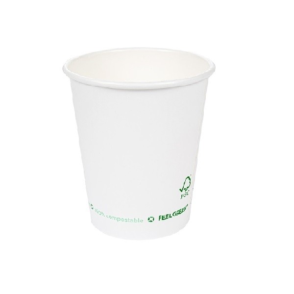 Gobelet en carton de 18 cl de volume ce qui correspond à du 7Oz. Voici enfin une vaisselle jetable 100% compostable, avec un design très écologique et soigné.