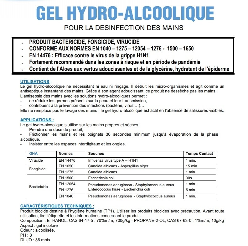 GEL HYDROALCOOLIQUE RECOMMANDÉE PAR L'OMS