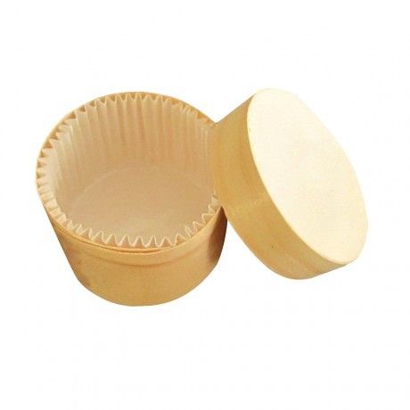 Boite cylindrique en bois de diamètre 11.8 cm avec couvercle permettant une cuisson à 200°C ou un réchauffage au micro-ondes (800w) de 3 minutes..