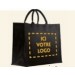 Sac en toile de jute NOIR de longueur 36cm, souflet de 20cm et d'une hauteur de 27cm possédant 2 anses courtes.