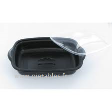 Barquette jetable Marmipack par Alphaform avec un fond noir et couvercle Transparent. De -20° + 130°- Fermeture qui se clipe bien. Etanche. Passe au congélateur. - Informations complémentaires
